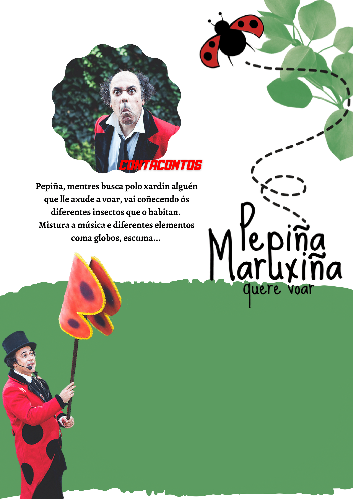 Pepiña, unha pequena maruxiña galega, busca curiosa polo xardín alguén que lle axude a voar. Na súa procura, vai coñecendo os diferentes insectos e animais que habitan o xardín. Dará Pepiña co xeito de voar?