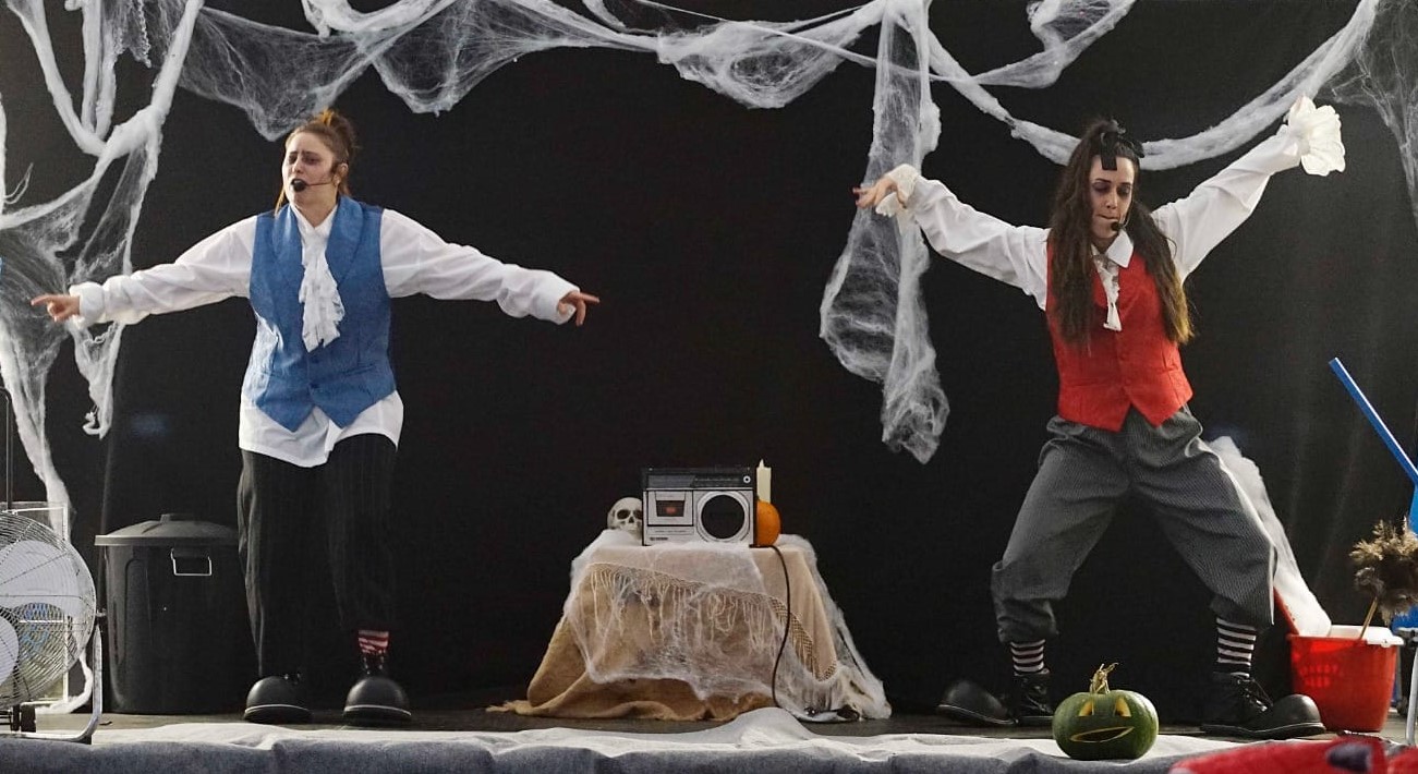 Dúas personaxes farán unha terrorífica sesión de sorrisos onde os nenos e nenas bailarán coma tolos e xogarán a ser auténticos monstros. Un espectáculo de movemento ambientado nas historias da noite do Samaín